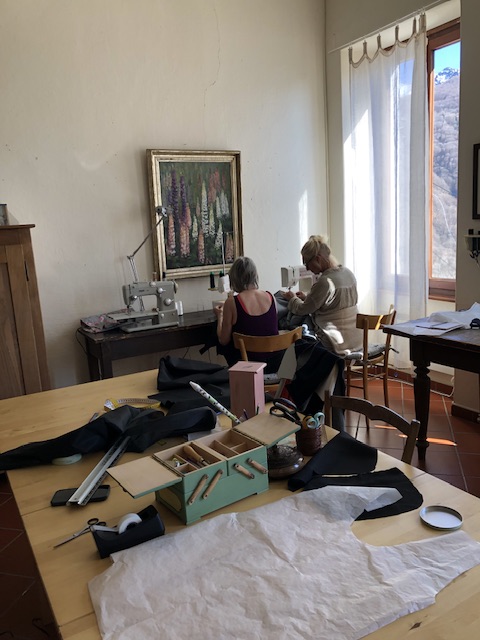 Il sole e le temperature aumentate hanno portato la voglia di creare e anche di provare qualcosa di nuovo. Così abbiamo osato: un’amica ha fatto i suoi primi jeans su misura con tutti i dettagli, un giovanotto ha cominciato a cucire e anche a stirare per la prima volta ed è riuscito a farsi un gilet secondo delle sue proprie idee, un altra amica ha cominciato una produzione di borse molto pratiche. E io ho provato di spiegare bene cosa devono fare loro, di dare una mano dove si voleva, di cambiare fili nelle macchine e quando ho trovato tempo ho provato di cucirmi un top che volevo semplice ma elegante e che prendeva alla fine molto più del tempo previsto.